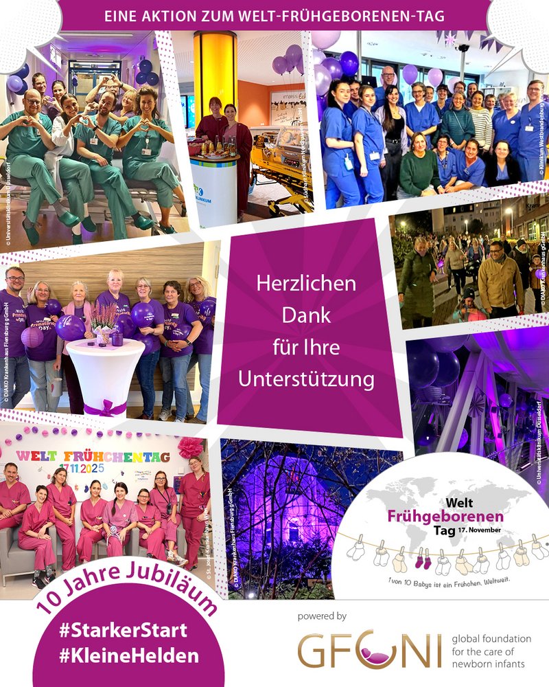 Anlässlich dieses bedeutenden Tages finden weltweit in mehr als 120 Ländern zahlreiche Aktionen und Kampagnen statt. Eine davon ist die Initiative „Starker Start für kleine Helden“, die neonatologische Intensivstationen in Deutschland, Österreich und der Schweiz dabei unterstützt, den 17. November trotz des anspruchsvollen Stationsalltags zu gestalten und zu feiern.